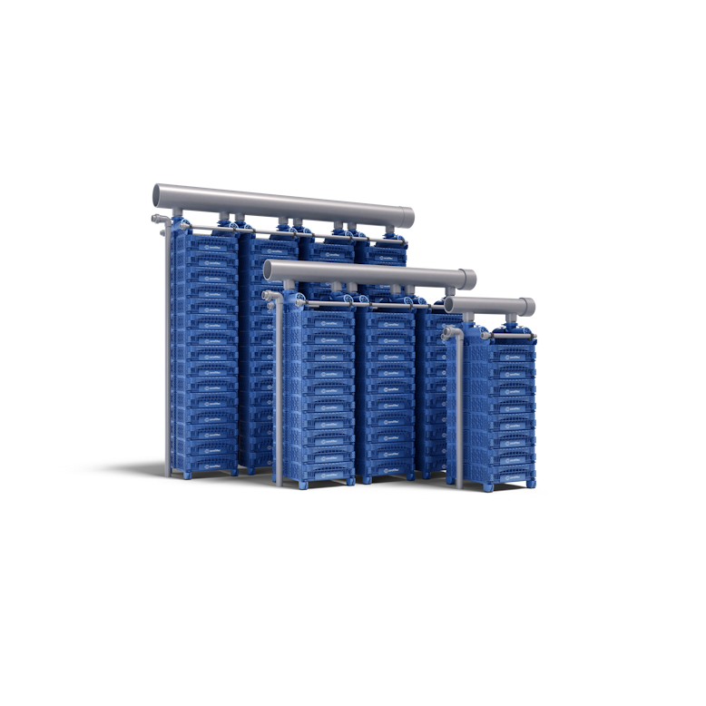 Our technology is based on a simple and scalable modular architecture. Ceramic plates are combined into compact filtration modules, and multiple modules are stacked into towers installed directly in the tank. Towers can be arranged in parallel for any required capacity. The internal hydraulic design ensures low pressure losses and high filtration efficiency, while the fully corrosion-free construction guarantees long-term durability.